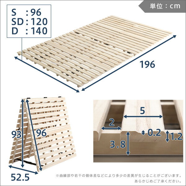 【商品について】すのこベッド 2つ折り式 桐仕様(セミダブル)【Airflow】 ベッド 折りたたみ 折り畳み すのこベッド 桐 すのこ 二つ折り 木製 湿気■サイズ:(約)120x196x3.8cm (約)8.1kg■カラー:ナチュラル■素材:天然木:桐■その他:お客様組み立て品です。