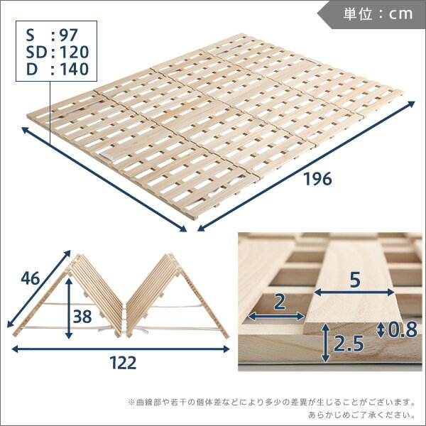梱包サイズ:(約)48x22x72cm梱包重量:(約)7.5kg仕様詳細商品名桐すのこベッド 4つ折りタイプ(140cm・ダブルサイズ)サイズシングル:(約)幅97x奥行196x高さ2.5cmセミダブル:(約)幅120x奥行196x高さ2.5cmダブル:(約)幅140x奥行196x高さ2.5cmカラーナチュラル特徴布団の下に一枚敷くだけで嫌な湿気を逃がします!使わない時はコンパクトに収納可能材質本体:桐材滑り止め:EVA樹脂静止耐荷重180kg梱包サイズシングル:(約)幅48x奥行12x高さ99cmセミダブル:(約)幅48x奥行22x高さ62cmダブル:(約)幅48x奥行22x高さ72cm注意※商品の仕様は、随時改良するように努めております。