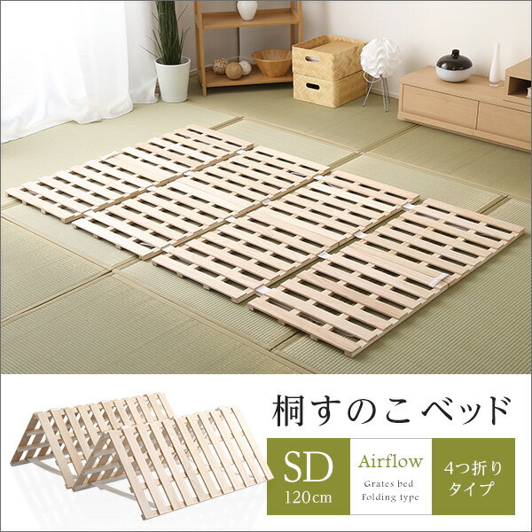 【商品について】すのこベッド 4つ折り式 桐仕様(セミダブル)【Airflow】 ベッド 折りたたみ 折り畳み すのこベッド 桐 すのこ 四つ折り 木製 湿気■サイズ:(約)120x196x2.5cm (約)5.9kg■カラー:ナチュラル■素材:天然木:桐■その他:完成品でのお届けです。